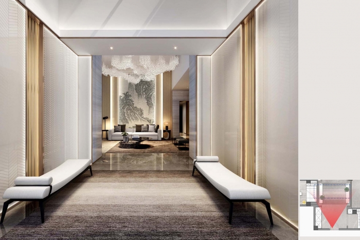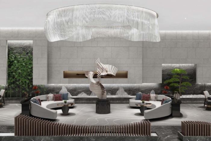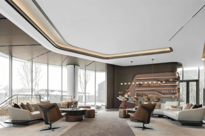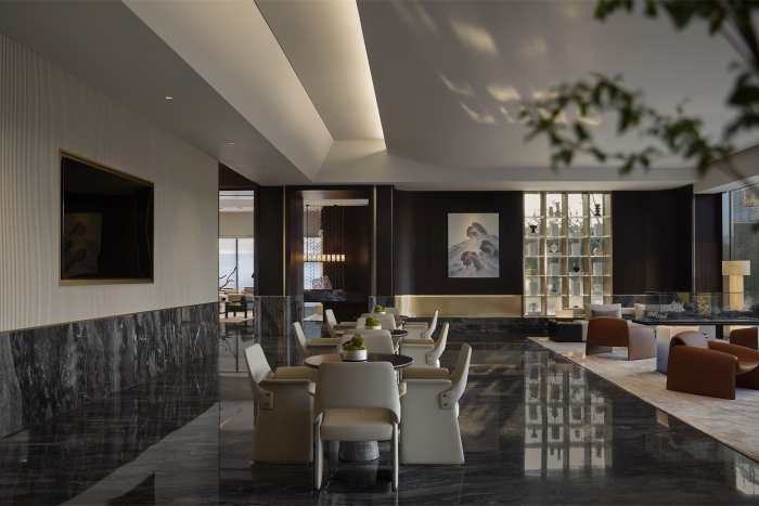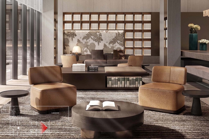 發(fā)揚中化民族文化,精工于內,雅奢于外,浮華璀璨,兼收并蓄,海納百川,締造美好生活場景。 出則繁華,入則寧靜,鬧市中的桃園秘境。以現代風格體現,結合木飾面、木紋大理石、水波紋不銹鋼等材料展示奢望而莊重。