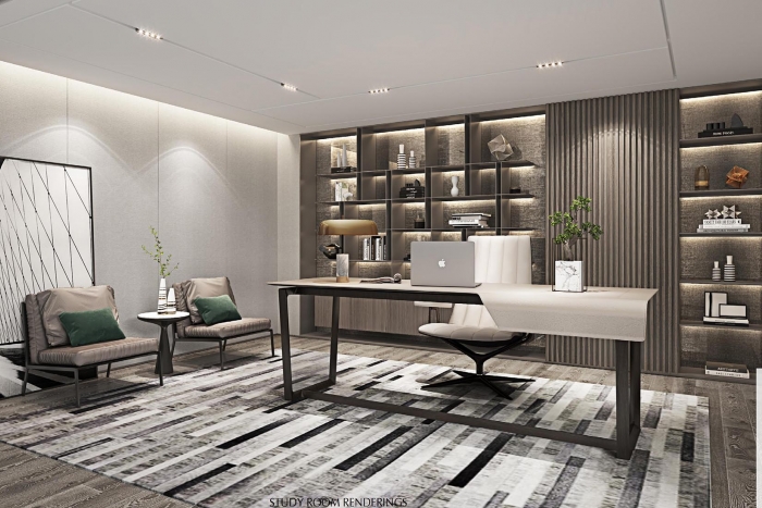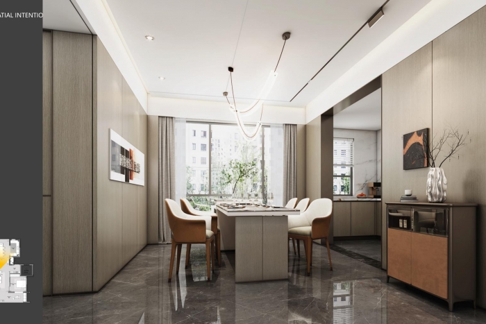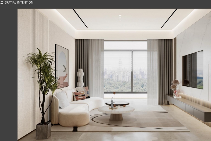 本樣板間裝修設計項目屬于室內裝飾裝修項目,設計師采用現代輕奢風格,內容包括水電路敷設,墻、頂、地面裝飾及后期軟裝安裝。金屬線條、塊面線性以及大面木制飾面板的運用,賦予會客空間柔美的情緒,是東方的神秘感,大氣而擁有張力。現代主義建筑的美學記憶在設計中娓娓道來,強調著幾何的線條感,家俱與空間元素融合便得以納入設計的點-線-...