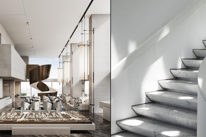 該售樓部裝修項目主要采用現代簡約風格,設計師通過淺色石材,復古灰色鋁板,混凝土清水漆,以及局部采用精品不銹鋼裝飾等裝飾手法將售樓部打造成簡約不簡單,萬物皆有靈,皆在匠心運。